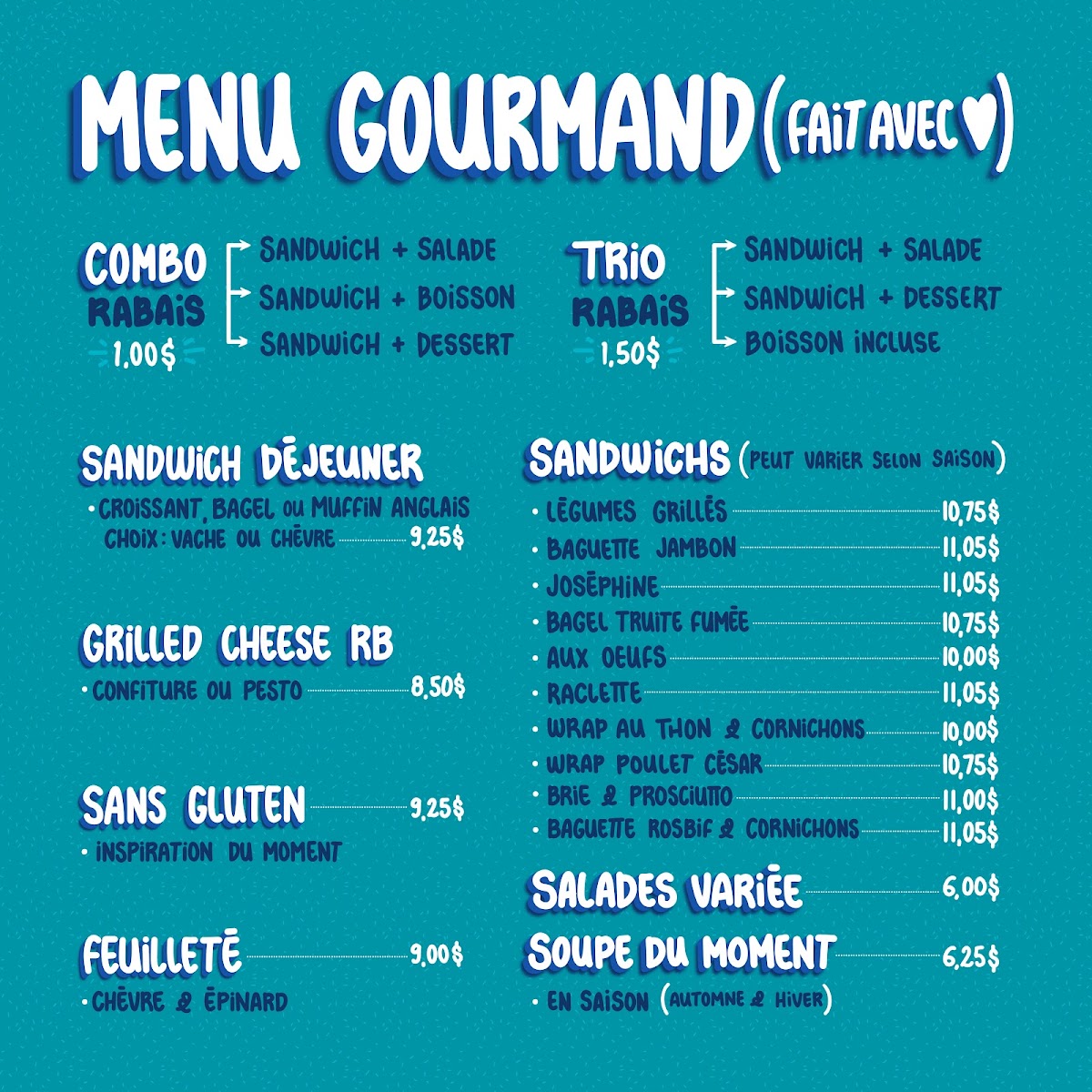 Café Ruban Bleu prides itself on serving up a variety of delectable offerings that cater to all tastes. Start your day with their scrumptious déjeuner options like the Bagel et tartinades, which provides a satisfying combination of flavors that's perfect for a morning boost. If you're in the mood for something lighter, their homemade yogurts promise a refreshing start to your day.